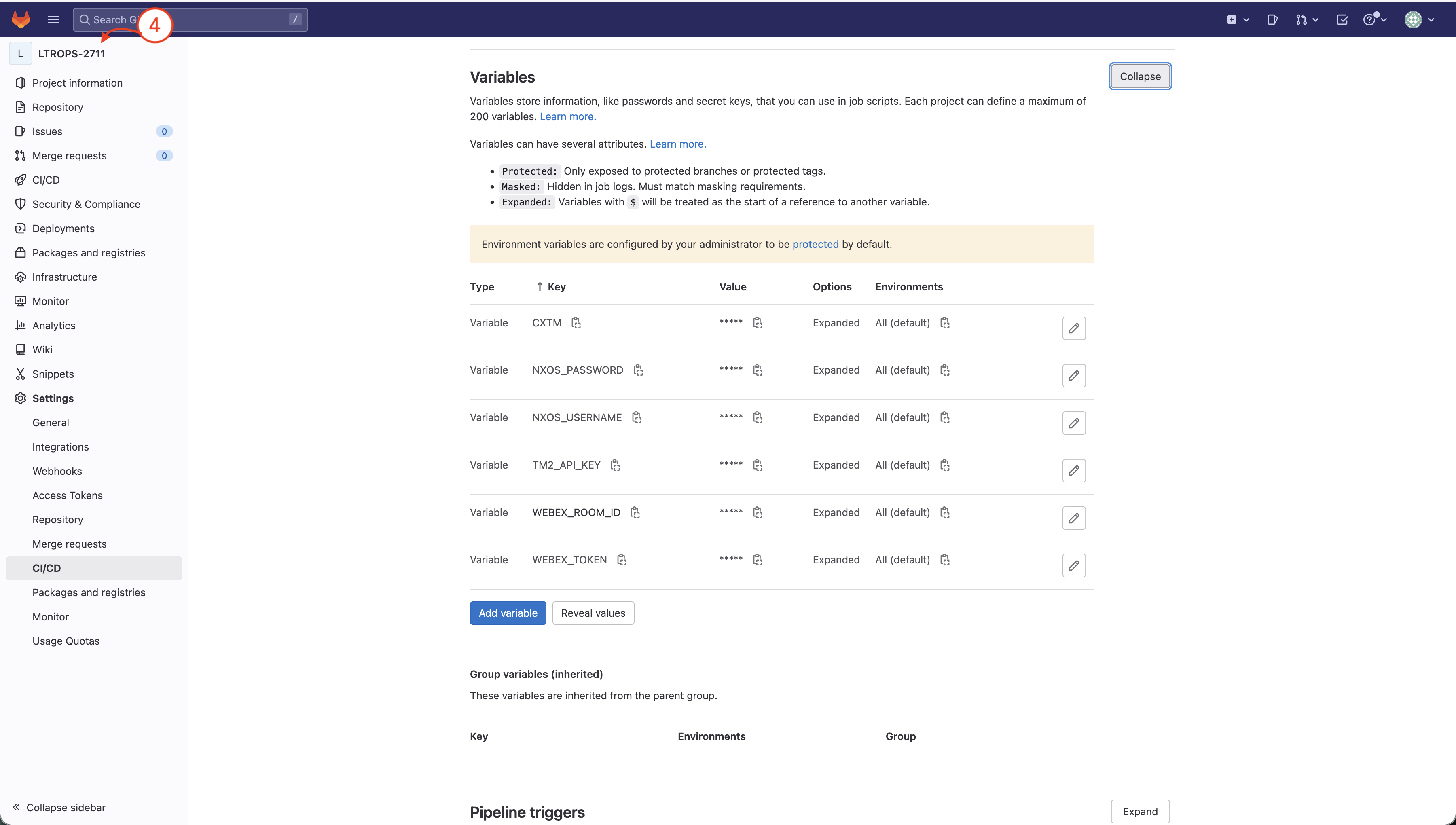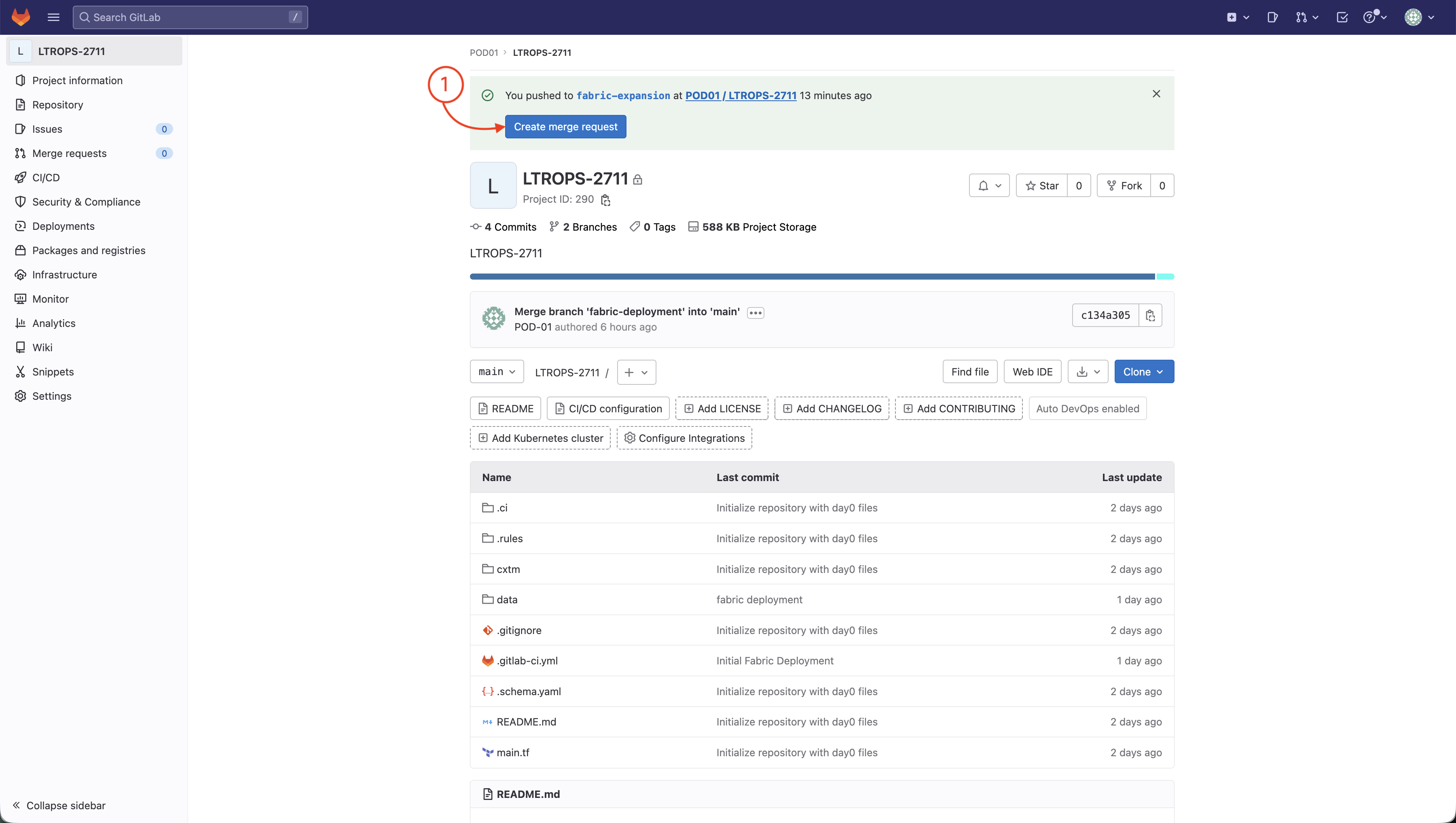 Return to GitLab repo by clicking on the LTROPS-2711 project name on the left side menu.