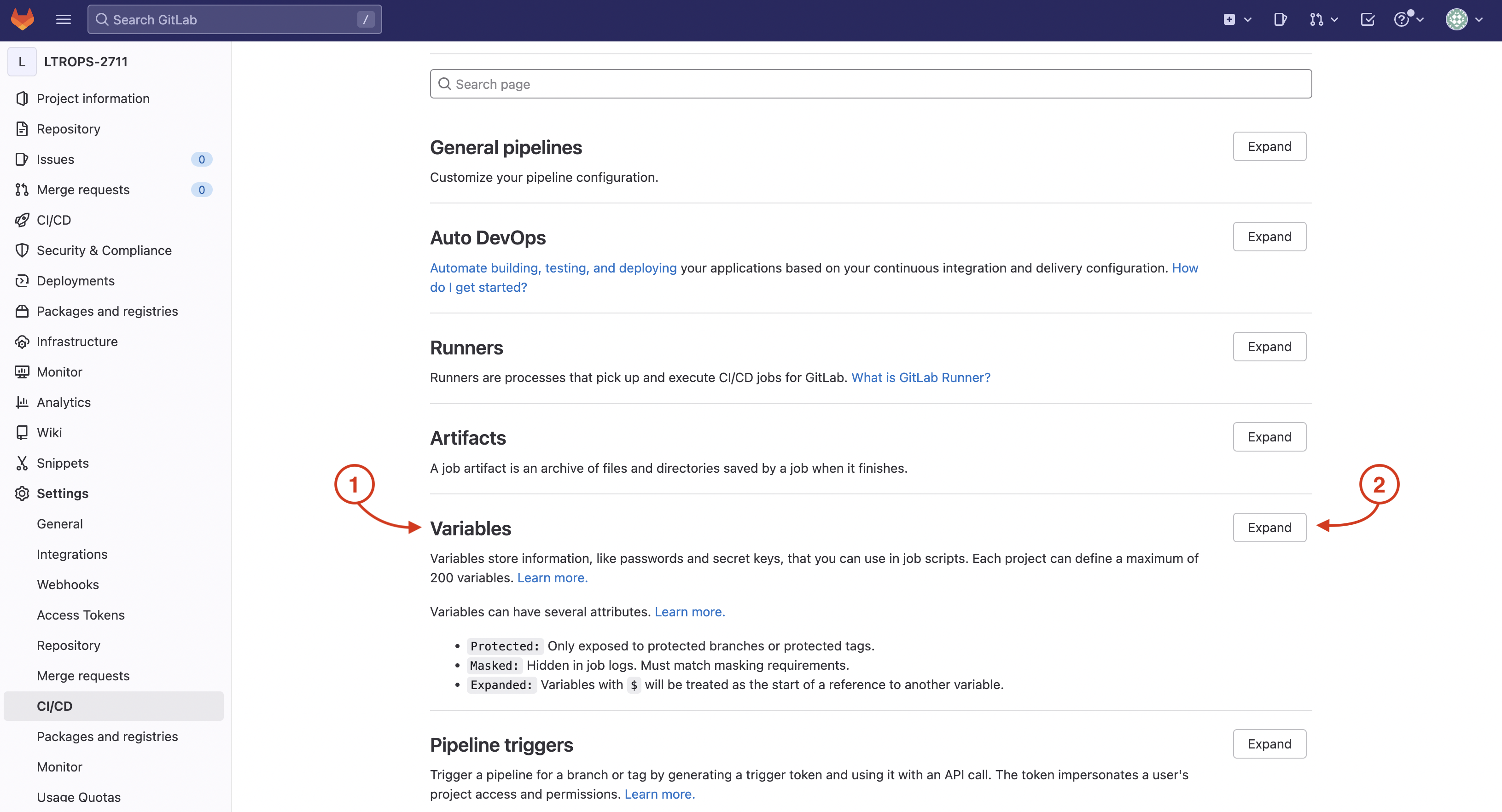 On your GitLab repo's CI/CD Settings page: